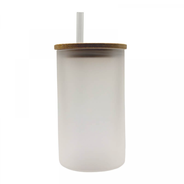 Sublimation 16oz Frosted Libbey Glass straight with bamboo lid